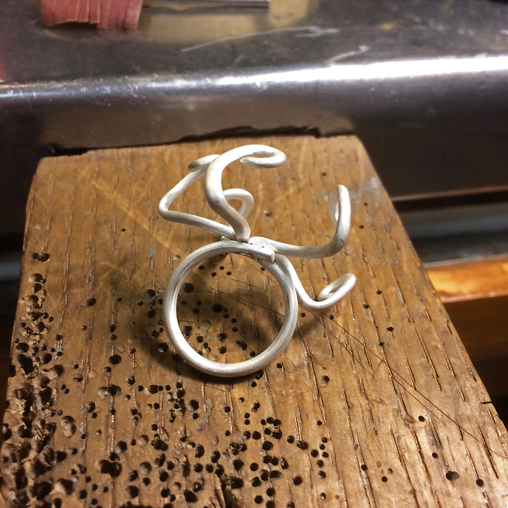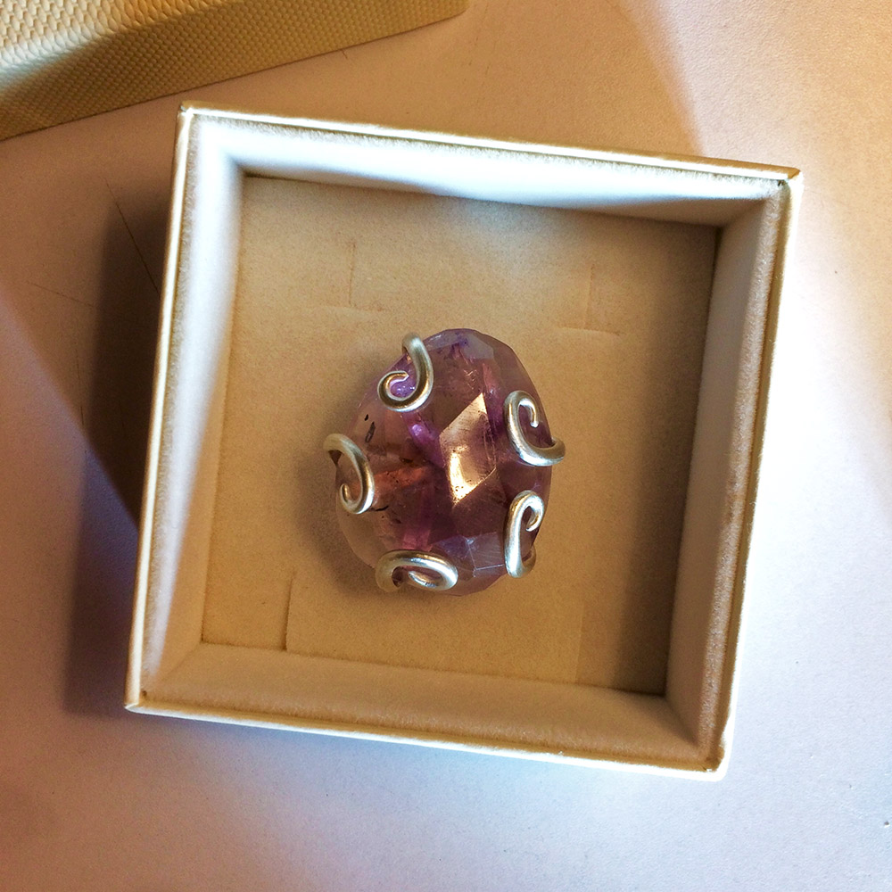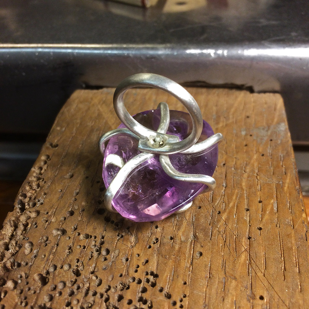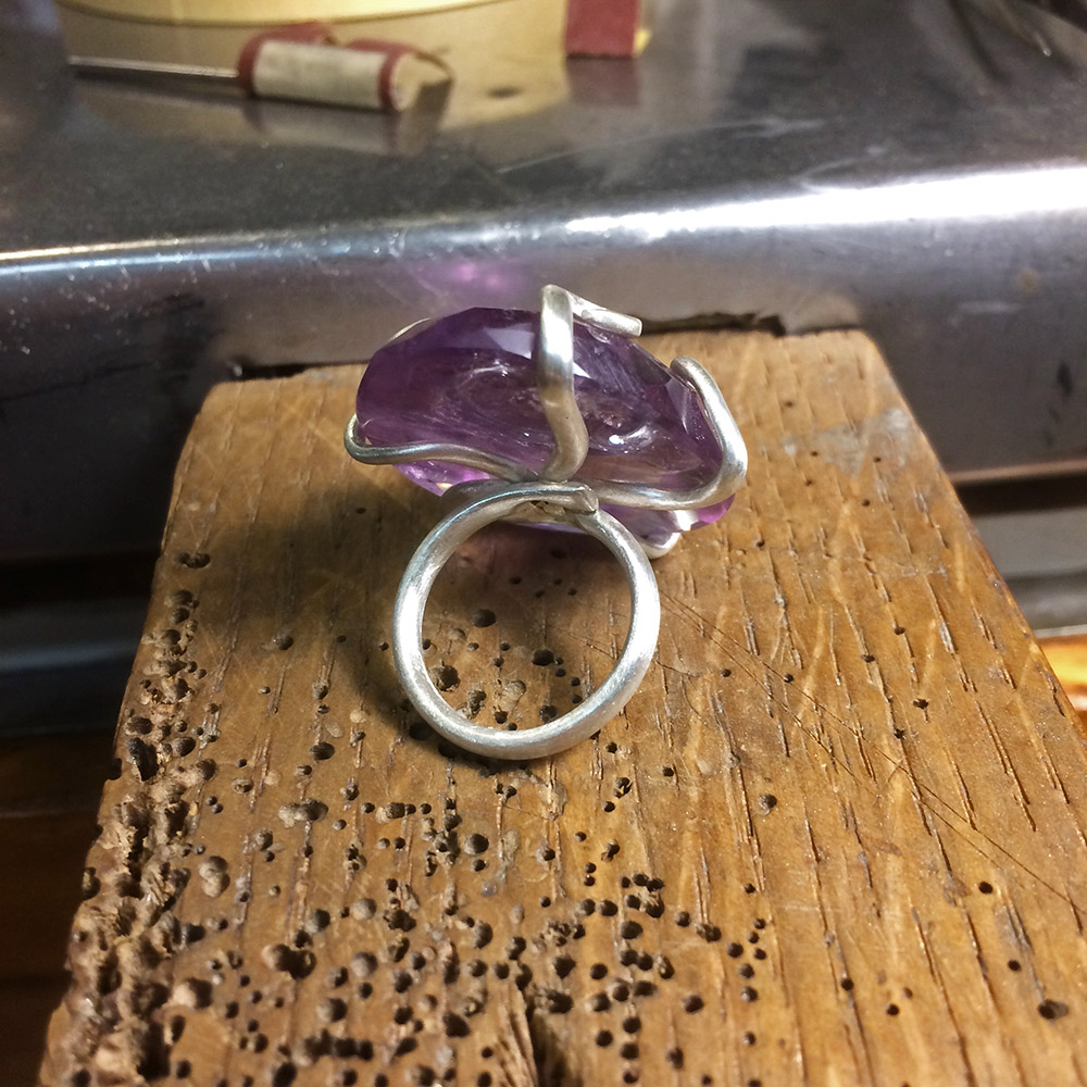 argento 925 graffiato e ametista su richiesta di Anna pietra abbracciata da cinque lunghi tentacoli • pensato e realizzato da Felicity