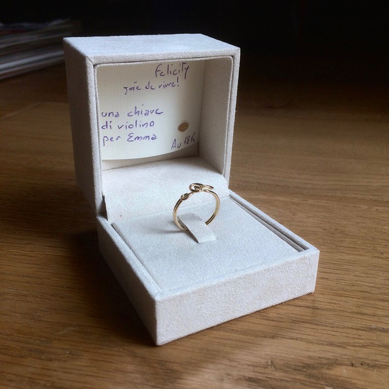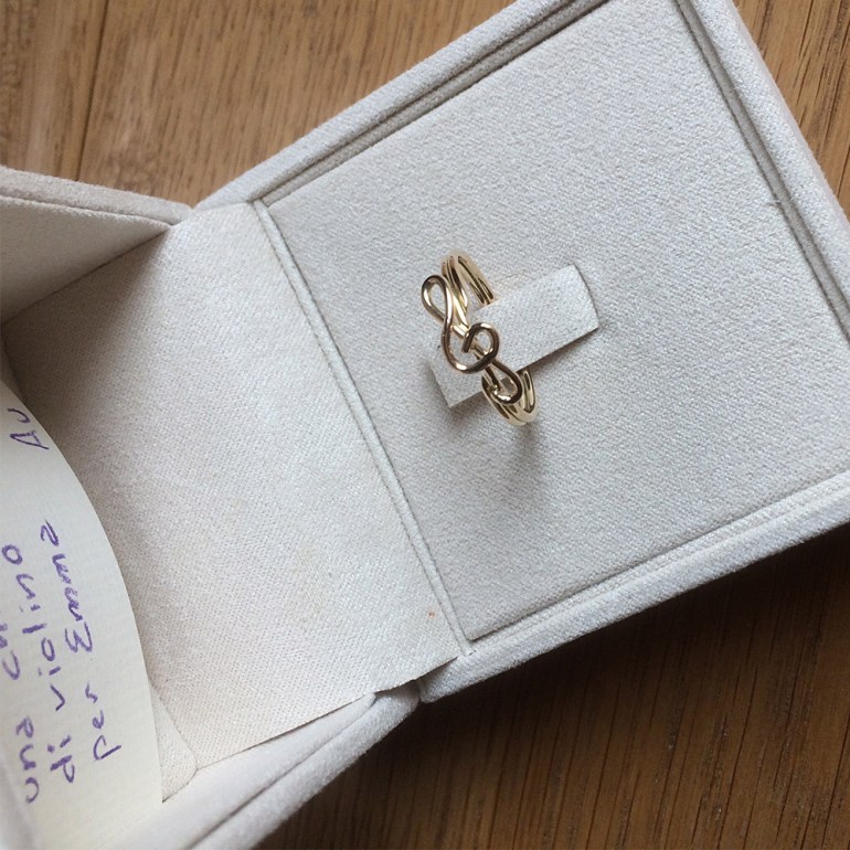 anello chiave di violino • oro 18k un regalo per Emma da parte delle sue amiche pensato e realizzato da Felicity • treble clef ring