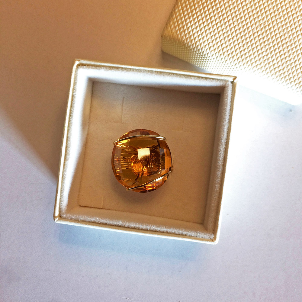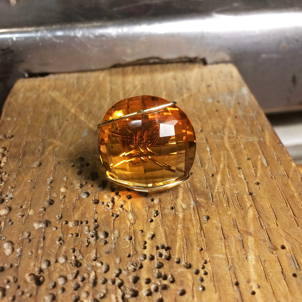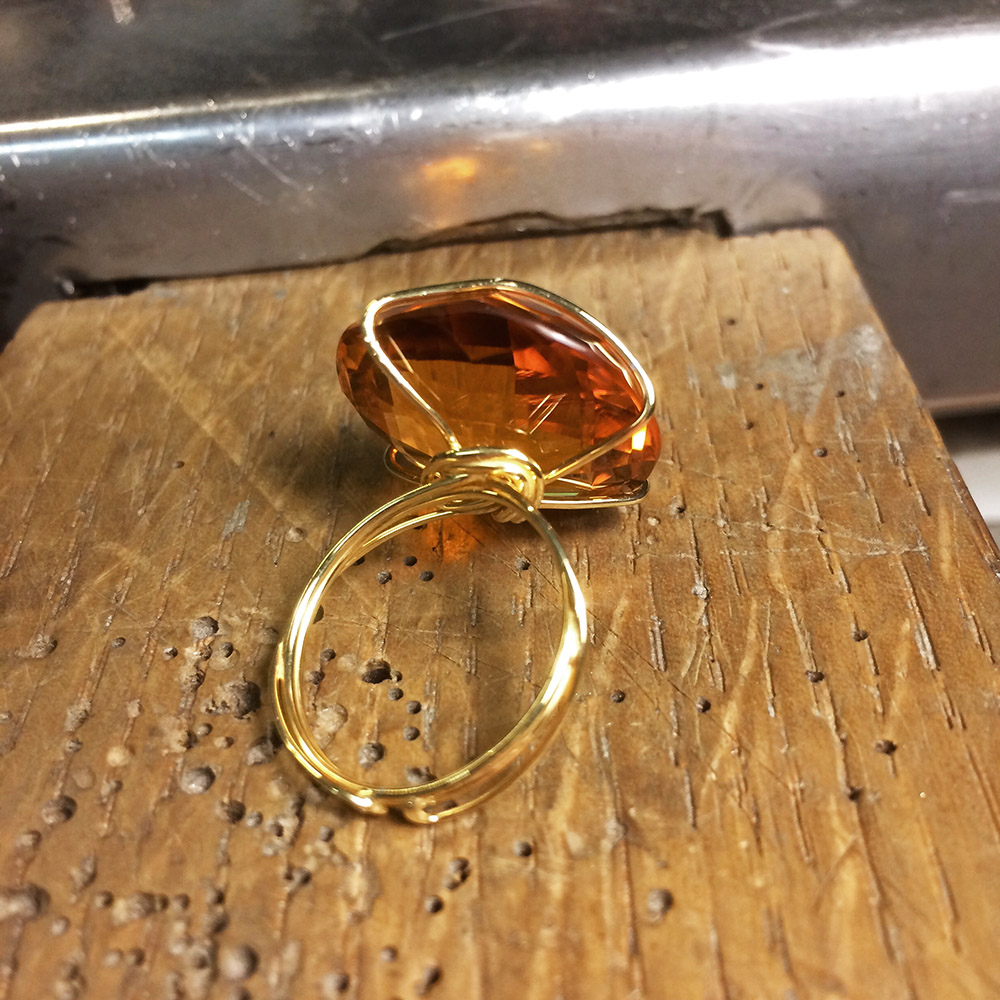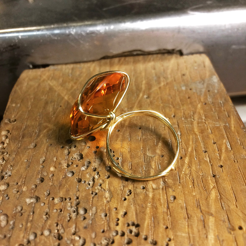 argento 925 placcato oro e quarzo citrino su richiesta di Anna pietra imprigionata da un unico filo di argento • pensato e realizzato da Felicity