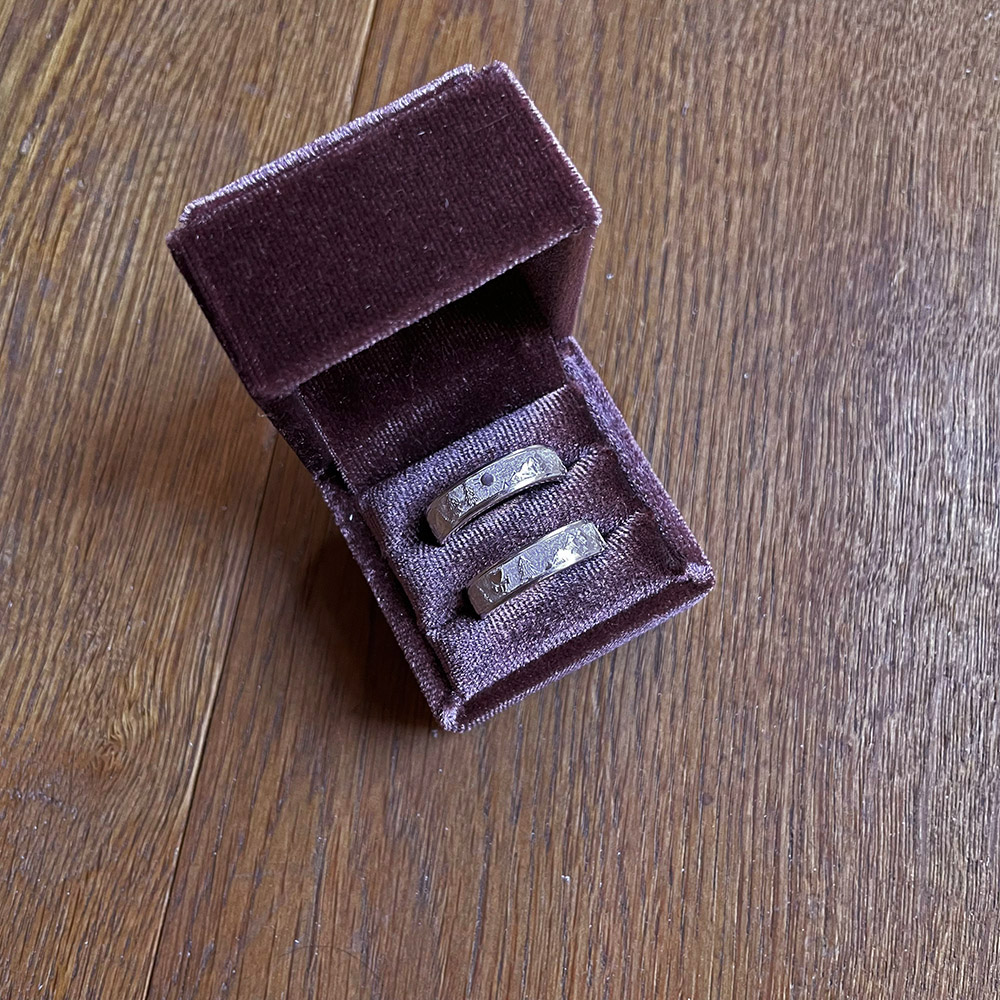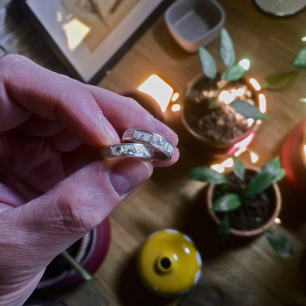argento 925 e incisione su disegno! richieste da Chiara e Adriano in celebrazione del loro 7º anno fedi realizzate da Felicity • incisione su disegno di Chiara realizzata dalla bravissima Francesca