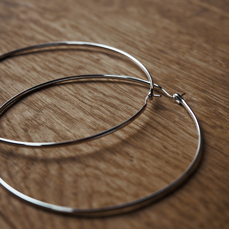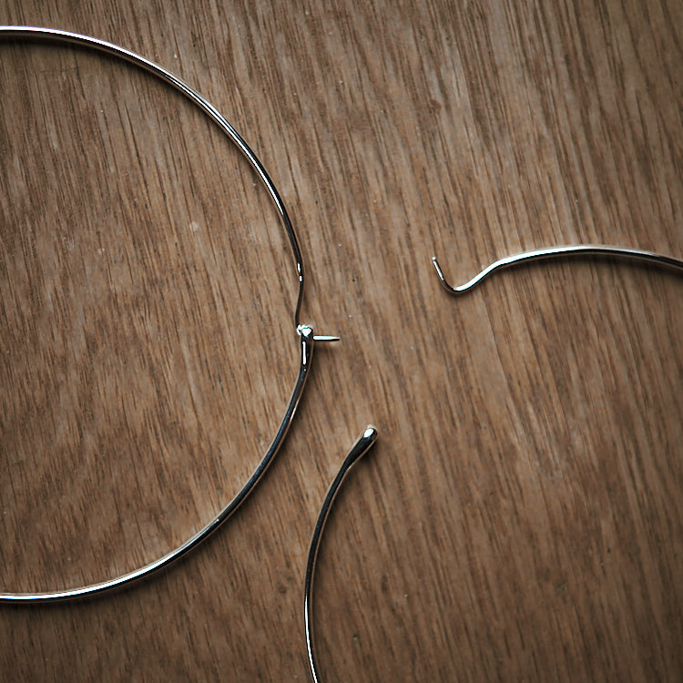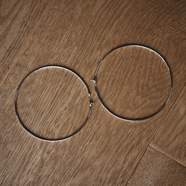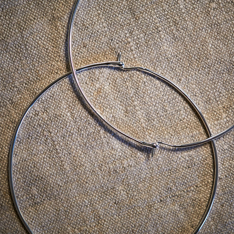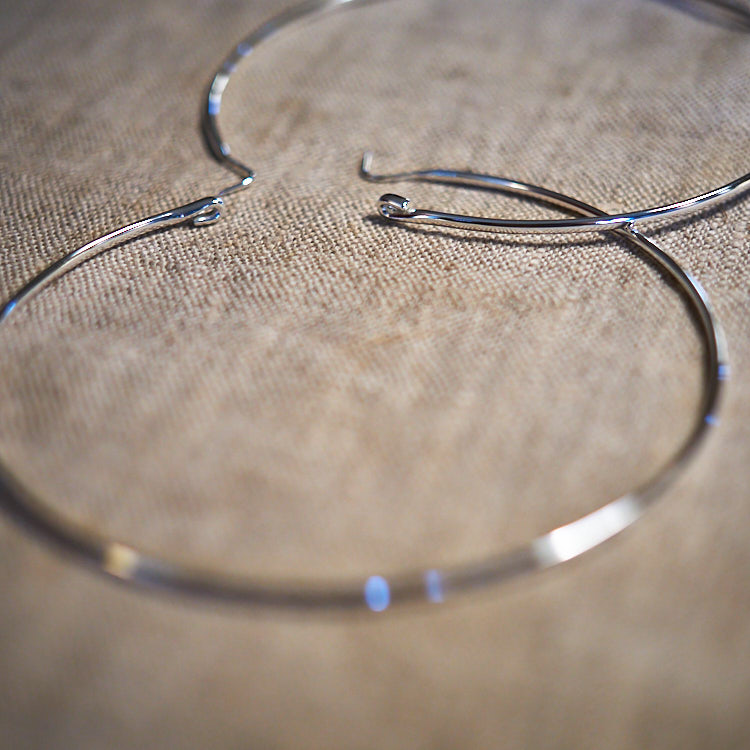 argento 925 e 9 cm di diametro: enormi! richiesti da Beatrice, con chiusura isobel e più grandi della carta di quel pasticcino un unico filo a sezione ovale • pensati e realizzati da Felicity